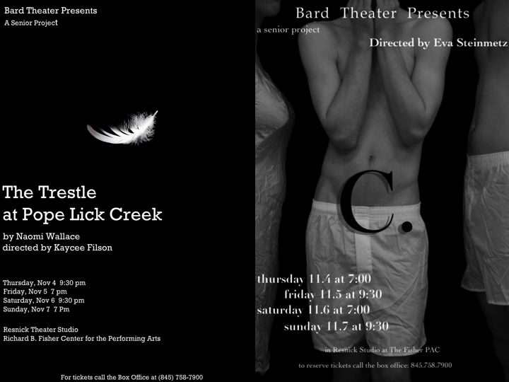 Fisher Center Resnick Drama Studio Playwrights' Festival. Works by Student Playwrights. Matinee Saturday at 3:00 p.m.
