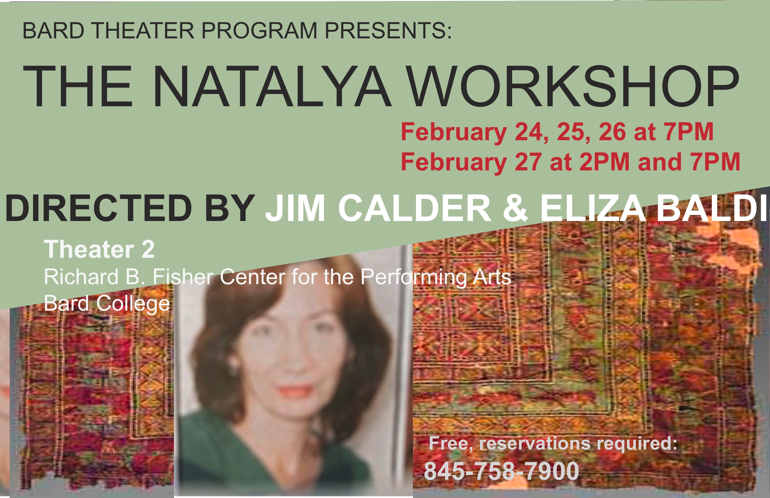 Last showing Sunday at 7pm. Please reserve tickets at the Fisher Box Office by calling (845)758-7900.